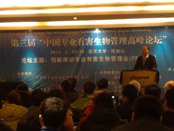 2012年2月25日—26日,第三屆“中國(guó)專業(yè)有害生物管理高峰論壇”在武漢舉行,圖為論壇現(xiàn)場(chǎng)