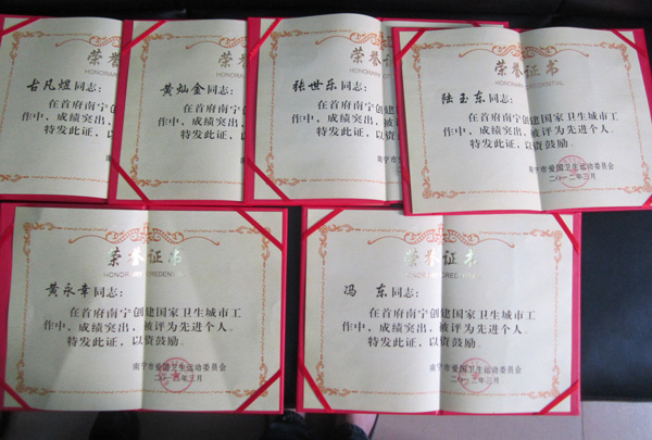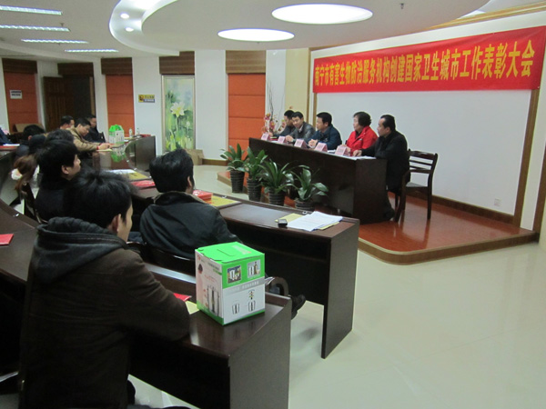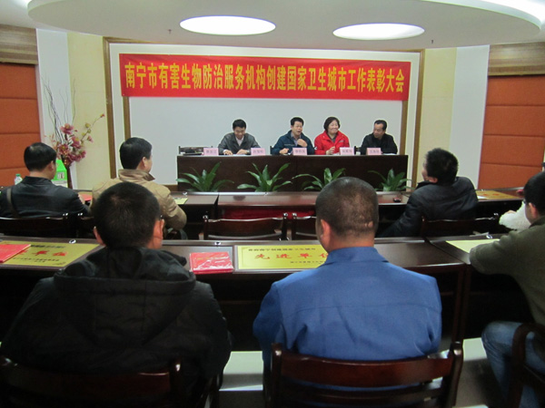 2012年3月8日,由南寧市愛衛(wèi)辦組織在市衛(wèi)生局隆重舉行了“南寧市有害生物防治服務(wù)機構(gòu)創(chuàng)建國家衛(wèi)生城市工作表彰大會”,南寧市康凈衛(wèi)生消毒殺蟲有限責(zé)任公司在首府南寧市創(chuàng)建國家衛(wèi)生城市工作中,成績突出,被評為先進單位以及本公司馮東等6名員工被評為先進個人,圖為李作慶副主任主持會議及頒發(fā)證書現(xiàn)場。
